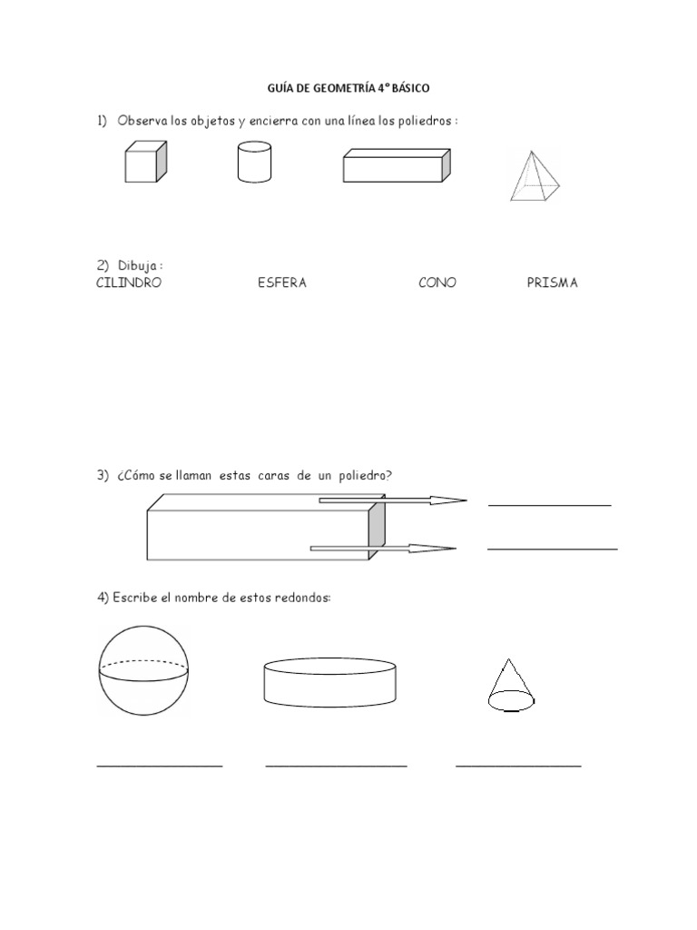 GUA DE GEOMETRA 4 BSICO 1) Observa los objetos y encierra con una lnea los poliedros :