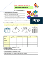 PROBLEMITAS!! 16) Escribe el nombre de la figura que cada adivinanza describe Cuando dibujas una cara plana de un cono o de un cilindro, me ves Qu soy? Tengo 6 caras planas que son iguales Qu soy? Soy un cuerpo geomtrico con una cara plana redonda Qu soy? Soy un cuerpo geomtrico sin vrtices ni aristas Qu soy? Si me trazas seis veces, dibujars un cubo Qu soy? Sebastin peg dos pirmides de base cuadrada idnticas por la cara de los cuadrados. Cuntas caras tiene el nuevo cuerpo geomtrico que se form? Cuntas aristas? Cuntos vrtices? Cristbal apil tres cubos del mismo tamao. Puso las caras de los cubos una exactamente encima de la otra Qu cuerpo geomtrico form Cristbal? Javiera peg una pirmide de base cuadrada arriba de un cubo. La cara cuadrada de la pirmide es del mismo tamao que cada una de las caras del cubo. Cuntas caras tiene el nuevo cuerpo geomtrico que cre? Cuntas aristas? Cuntos vrtices?