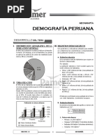 30. Nmero total de poblacin existente en determinado territorio: a) Poblacin absoluta b) Densidad poblacional c) Poblacin relativa d) Nacin e) Tasa de crecimiento 31. A nivel departamental, la poblacin masculina fue mayor que la femenina en nueve departamentos peruanos segn el censo del 2007, siendo el de mayor porcentaje: a) San Martn b) Tumbes c) Amazonas d) Ucayali e) Madre de Dios 32. Es la ciudad capital ms poblada: a) Sao Paulo d) Buenos Aires b) New York e) Tokyo c) Mxico 33. Es el departamento peruano con mayor poblacin femenina: a) Lima d) Lambayeque b) Arequipa e) Huancavelica c) La Libertad 34. La poblacin peruana segn el censo del 2007, contina concentrada en la provincia de Lima que alberga 8445,211 habitantes. Esto representa el: a) 25% del total de la poblacin peruana b) 26% del total de la poblacin peruana c) 27% del total de la poblacin peruana d) 30% del total de la poblacin peruana e) 35% del total de la poblacin peruana 35. Porcentaje de personas menores de 15 aos y mayores de 64 aos, que dependen de la poblacin que desempea su labores: a) Poblacin estacionaria b) ndice de crecimiento c) Poblacin desempleada d) Densidad poblacional e) ndice de dependencia 36. La tasa de crecimiento poblacional nos indica: a) Cantidad de nacidos vivos b) Cantidad de defunciones c) Cantidad de inmigrantes d) Cantidad de poblacin rural e) Ritmo con que aumenta la poblacin 37. Indicador que representa el nmero promedio de aos que le espera vivir a un recin nacido: a) Esperanza de vida b) Tasa de natalidad c) Tasa de crecimiento d) PEA e) Tasa de morbilidad 38. Nmero promedio de hijos por mujer al final de su periodo reproductivo: a) Tasa bruta de fecundidad b) Tasa bruta de natalidad c) Esperanza de vida d) Tasa bruta de morbilidad e) Tasa de crecimiento