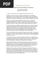 5- Hechos 1,14. Hechos 3,1. El discpulo vive como Iglesia. Juan recibi a Mara en su casa, pero de seguro Juan no dijo a Mara: vmonos t y yo solamente! Dejemos esos cobardes que huyeron y abandonaron al Maestro! no! Juan estara ah orando en un mismo espritu junto con Mara y los apstoles, vemos a Juan junto a Pedro subir al templo, junto a aquel que lo neg, pero l no est ah para condenar o sealar sino para orar y amar a su hermano. La casa de Juan es la Iglesia, la comunidad cristiana, el discpulo vive como Iglesia, descubre en ella su casa y familia, as la llama el apstol San Pablo (Efesios 2,19-20. 1Timoteo3, 15). No se es discpulo sin comunin con la Iglesia que es comunidad de discpulos, no hay discipulado sin vida comunitaria, es ah y en todos los mbitos de relaciones interpersonales donde est llamado a vivir como Iglesia, es decir vivir el amor del cual el Maestro enfatizo como el distintivo supremo de sus discpulos En esto conocern que son mis discpulos, en que se aman los unos a los otros como yo les he amado (Jn 13,35). El documento de Aparecida n.268.d nos dice : No