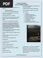 duermen se queda con El conversando, y entonces nos dice el evangelio se recuesta sobre el pecho de Jess , le pregunta y El le responder quisiera detenerme en estos detalles :estaba al lado de Jess , se recost sobre su pecho, este gesto no fue un gesto improvisado , no!!, es un gesto de alguien enamorado de Jesus,obsesionado, cautivado, conquistado por El, un gesto de uno que entra en intimidad, en cercana con el Maestro, el discpulo se recuesta al pecho del Maestro, siente y escucha los latidos del corazn de Jess y su corazn va al mismo ritmo pues es uno con El. Esto nos habla de cercana, de unin con Jess, de intimidad, de estar con l, de hecho segn el evangelio de San Marcos 3,13-14 nuestro primer llamado es estar con l antes de hablar de l y actuar en su nombre, muchos estn hablando de Jess, pocos con Jess, muchos estn afanados en las cosas del Seor olvidando al Seor de las cosas cayendo en un activismo destructor y estril. El discpulo est constantemente a los pies del Maestro, entra en intimidad, en relacin cercana con l, y en este contacto con El en la oracin personal, la Palabra, la vida sacramental se va transfigurando a su imagen. Aparecida n.154: Jess, al
