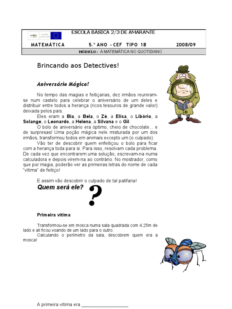 largura. Calculem o seu perímetro e desvendarão o segundo mistério.