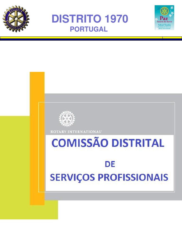 Comisso Distrital de Servios Profissionais: Fernando Castro, Rotary Club de Oliveira do Bairro Isabel Machado, Rotary Club de Santo Tirso Manuel Andrade, Rotary Club de Matosinhos Manuel Cordeiro, Rotary Club de Vila Real Paulo Pinho, Rotary Club de Aveiro