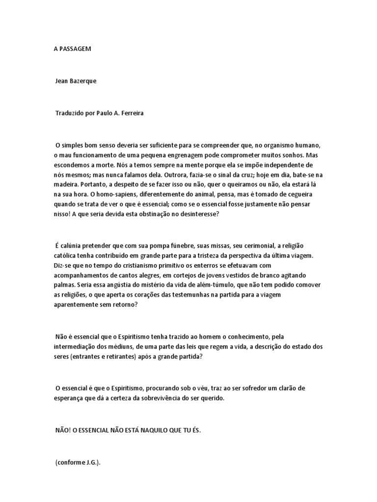 O essencial que o Espiritismo, procurando sob o vu, traz ao ser sofredor um claro de esperana que d a certeza da sobrevivncia do ser querido.