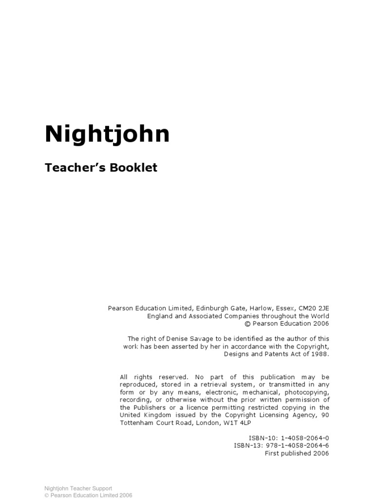 Nightjohn Teacher Support Pearson Education Limited 2006