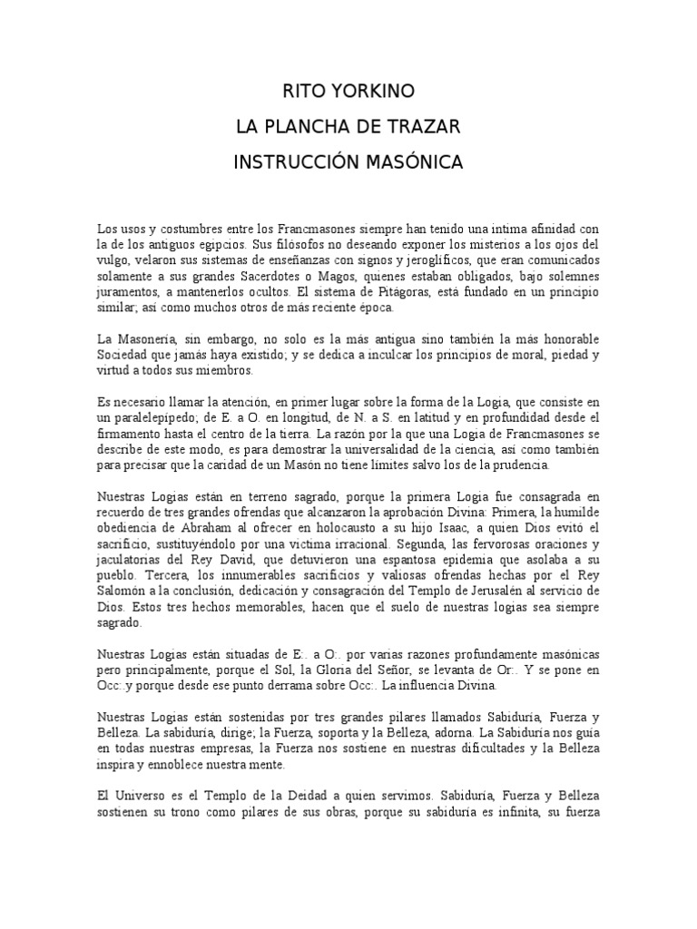RITO YORKINO LA PLANCHA DE TRAZAR INSTRUCCIN MASNICA