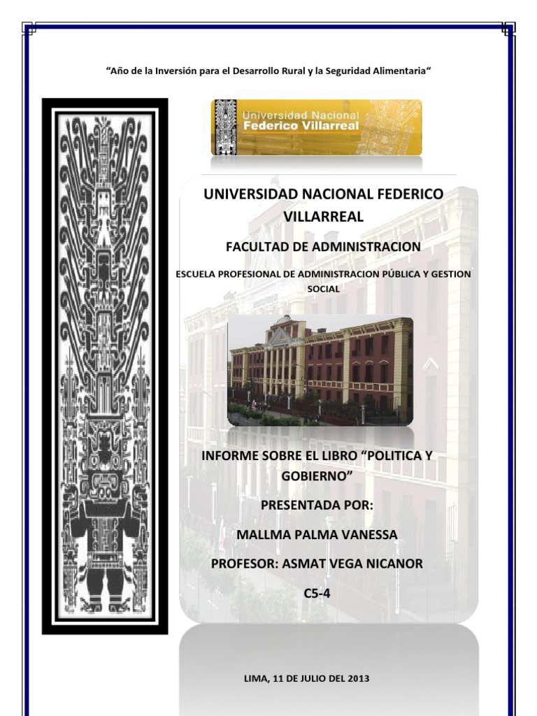 INFORME SOBRE EL LIBRO “POLITICA Y GOBIERNO” PRESENTADA POR: MALLMA PALMA VANESSA PROFESOR: ASMAT VEGA NICANOR C5-4