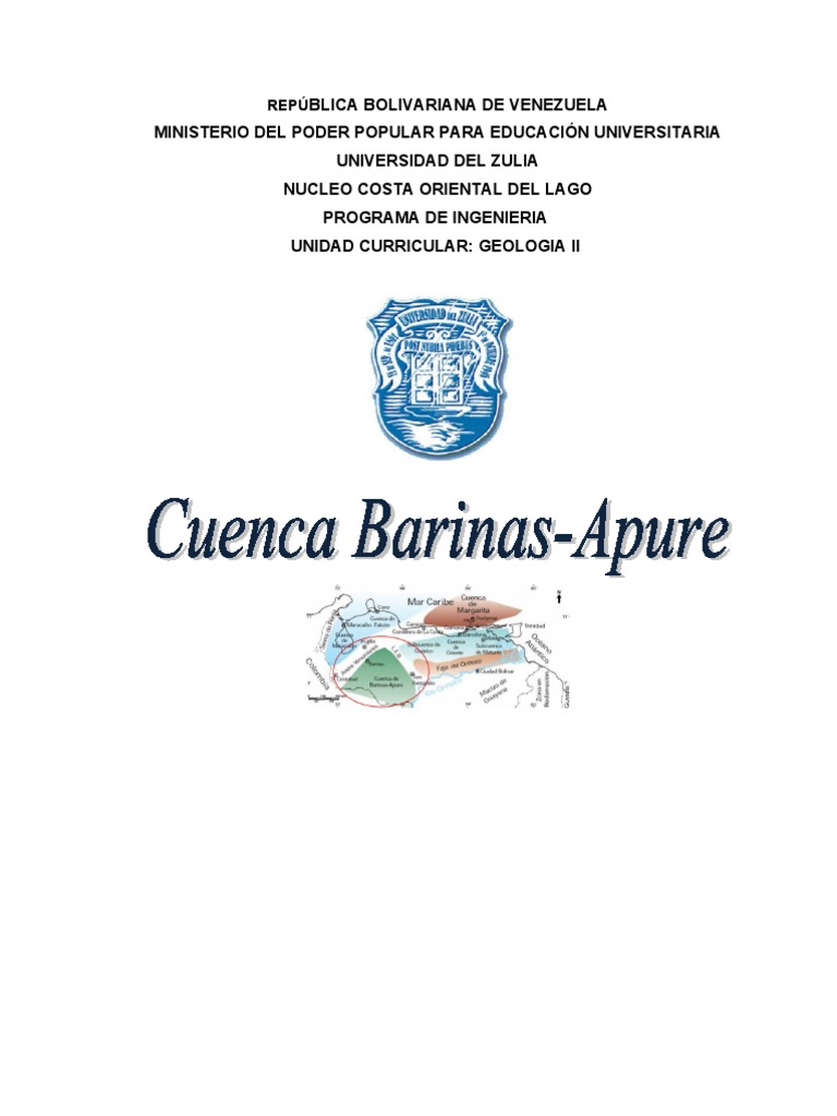 DESARROLLO 1. Cuenca Apure-Barinas. Las cuencas de Barinas-Apure, la tercera de Venezuela, por su volumen de recursos petrolferos, es una depresin estructural situada en la regin Suroccidental del Pas. En lo que a recursos petrolferos se conoce esta limitada hacia el noroeste por los contrafuertes de la cadena de los Andes Venezolanos. Al norte por la prolongacin Occidental de la Serrana del Interior Central y al este y noroeste por el levantamiento del Bal; al sur est separada de la cuenca de los llanos Venezolanos, por un al gravimtrico situado entre los ros Apure y Arauca, estas delimitaciones de cuencas petrolferas los lmites fijados por su supuesta importancia econmica siempre son arbitrarios y no se ajustan a occidente fisiogrficos ni a consideraciones puramente biolgicas.