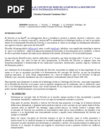GARCA MYNEZ8 llega a la conclusin de que la frase de KANT: los juristas buscan vigencia todava debe una definicin para su concepto del derecho para que tengan an vigencia se debe a que los juristas, cuando pretenden decirnos qu es el Derecho, se refiere a distintos objetos de conocimientos. Afirma GARCA MYNEZ que las definiciones propuestas se pueden dividir en tres grandes grupos, a los cuales l llama: Derecho formalmente vlido, Derecho intrnsecamente vlido y Derecho eficaz o positivo. Y propone estas tres definiciones: 1 Derecho formalmente vlido es el conjunto de reglas bilaterales de conducta que en determinado pas y cierta poca la autoridad poltica declara obligatorias. 2 Derecho intrnsecamente vlido es la regulacin bilateral justa de la vida de una comunidad en un momento dado. 3 Derecho positivo o eficaz es el conjunto de reglas bilaterales de conducta que efectivamente rigen la vida de una conducta en cierto momento de su historia. Valindonos del perspectivismo orteguiano 9, podemos decir que el Derecho es una realidad social e histrica que no puede ser percibida sino desde la especial circunstancia en que se encuentra el observador, por lo cual es necesario agrupar las perspectivas fundamentales de lo jurdico para tener una visin de conjunto del derecho. Es muy difundida una doble concepcin del Derecho considerando, ya como norma o conjunto de normas integrantes del ordenamiento jurdico (Derecho-norma o derecho objetivo o positivo) o ya como facultad del sujeto (Derecho subjetivo o derechofacultad). Uno de los primeros fines del estudio del derecho es precisamente volvernos conscientes de la importancia que tiene tanto lo normativo (Derecho positivo) como las facultades, poderes y atribuciones de que gozamos (Derecho subjetivo) en nuestra existencia individual y social. CONCLUSION Con las mencionadas acepciones comprobamos que el trmino Derecho es ambiguo, por cuento con l podemos referirnos a ideas distintas. El Derecho es conducta humana social regulada y como tal emerge de la realidad, en el sentido de que esta es Lafuente inspiradora de la norma, pero tambin es instrumento o medio para modificar realidades; tan verdad es esto, como que entre ser humano y realidad social existe una profunda interrelacin. Es claro que la norma que no emerge como secrecin social solo tiene vigencia si verdaderamente logra modificar o transformar la sociedad como consecuencia de que las gentes adoptan los nuevos comportamientos acordes con el mandato legal. A fin de cuentas, podemos decir que todo Derecho viene de la sociedad (es secrecin social) o va hacia la sociedad y solo se le tendr como tal si llega a ella (caso de la norma que viene a modificar o trasformar una sociedad), esto es, el Derecho es producido por y para el ser humano que vive en sociedad. Por eso, no podemos separar entre derecho y sociedad, pues sin aquel no puede existir sociedad 8 9