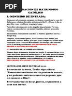 SALERO Ustedes son la sal de la tierra (Mt 5,13). Sal para conservar el sabor de Cristo, ese sabor que a los hermanos han de compartir. Sal que irn esparciendo para fertilizar, permitiendo que por este medio nazcan en esta comarca nuevos retoos de cristiandad. Tengan sal en ustedes y vivan en paz uno con otro (Mc 9,50). AZUCARERA Cuntos dulces tan sabrosos le puedes preparar a ___________ con azcar, este producto indispensable en el hogar; piensa que ser dulce es muy importante en el matrimonio para que ste sea duradero. Una de las virtudes ms apreciadas por los hombres es precisamente la dulzura. ARROZ Dichosos todos los que temen a Yahv, los que van por sus caminos, del trabajo de tus manos comers, dichoso t, que todo te ir bien!, tu esposa ser como una vida fecunda en el interior de tu casa. Tus hijos, como brotes de olivo en torno de tu mesa (Sal. 128, 1-3). Que su hogar sea fecundo con esa fecundidad que no slo se manifiesta en la maternidad sino tambin en las buenas obras, curando la enfermedad, alentando al que sufre y tratando a todos con caridad MONITOR (A): Llegamos al final de la parte espiritual de nuestra reunin. Demos gracias a Dios por este momento que seguramente ser inolvidable recitando juntos y por ________________ (ellos) especialmente, la misma oracin que Jess nos ense. TODOS: PADRE NUESTRO. MONITOR (A): Vamos a darles otro fuerte aplauso a ________ y _______ y a seguir desde ahora encomendndolos al Seor en el nombre del Padre + y del Hijo y del Espritu Santo. Amn. Que sean muy felices! (Se pone msica festiva)