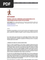 de las ideas presentadas en este documento. Stuart Struever, Joseph Caldwell, Howard Winters, James Brown, Melvin Fowler, y el autor tuvieron frecuentes discusiones durante los ltimos tres aos en un intento por incrementar nuestro entendimiento de la prehistoria en el Medio Oeste. Aunque individualmente cada uno de los participantes en nuestra propia esfera de interaccin hemos contribuido a la formulacin de los argumentos aqu presentes, acepto la completa responsabilidad de la forma particular en la que las ideas son presentadas. Adems, me gustara expresar mi gratitud a Carl Axel Moberg del Museo Gteburg, Suecia, quin particip en la enseanza conjunta de una clase junto con Robert J. Braidwood y yo. Los argumentos de Moberg y sus refutaciones ayudaron notablemente en la definicin de las ideas aqu presentadas. Mis estudiantes durante los ltimos tres aos particularmente William Longacre, James Hill, Leslie Freeman, y Robert Whallon han sido una constante fuente de estimulacin y han iniciado reevaluaciones angustiantes de mi propio pensamiento. De particular importancia es el rol que tuvo mi esposa, Sally Binford .Ella ha sido una crtica severa tanto a mi lgica como a mi sintaxis, y he admitido agradecidamente su edicin de este manuscrito. Tabla 1. CONTINGENCIA DE LA VARIACIN FORMAL Variacin morfolgica Variacin decorativa Dimensin tcnica Dimensin de diseo