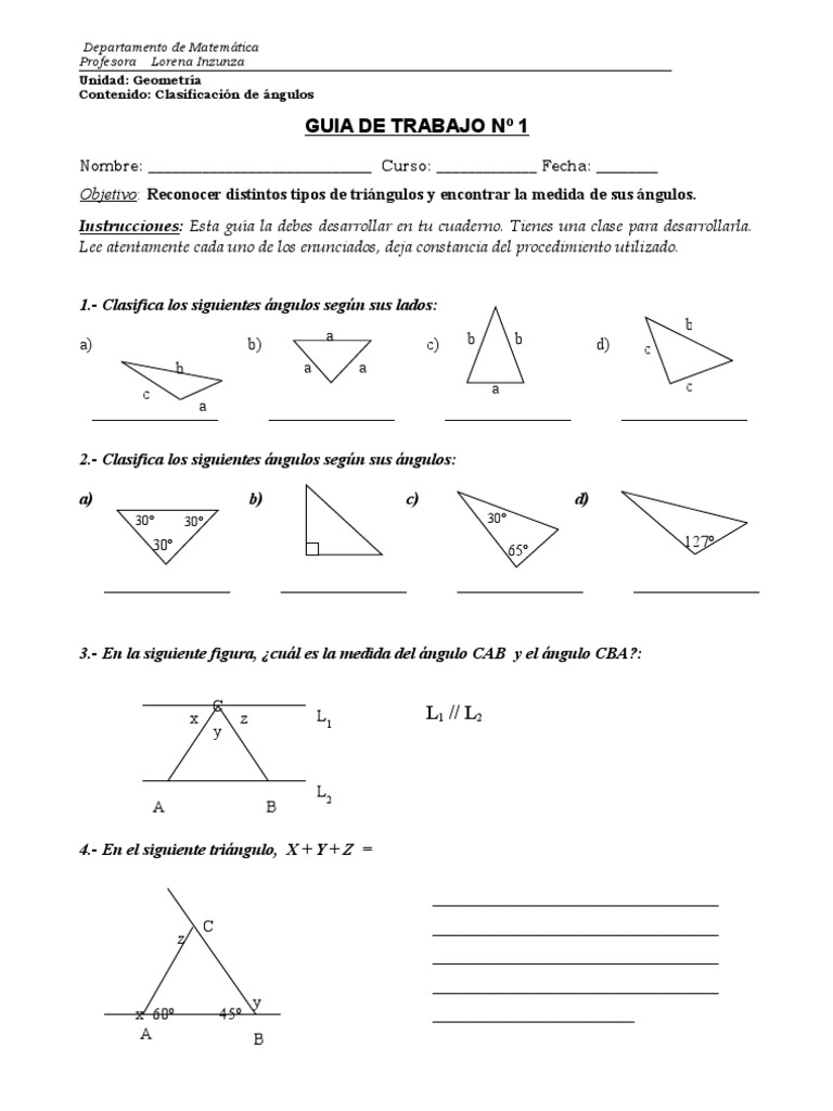 Objetivo: Reconocer distintos tipos de triángulos y encontrar la medida de sus ángulos.