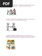 1.- Honestidad: La honestidad es una cualidad de calidad humana que consiste en comportarse y expresarse con coherencia y sinceridad (decir la verdad ), y de acuerdo con los valores de verdad y justicia. 2.- Tolerancia: La tolerancia social es el respeto hacia ideas, creencias o prcticas cuando son diferentes o contrarias a las propias. 3.- Libertad: La libertad es un concepto que hace referencia a muchos aspectos de la vida humana. Comnmente se le define como aquella facultad natural que posee el ser humano de poder obrar segn su propia voluntad. Tambin es posible comprender la libertad como aquel estado en el que el hombre no est siendo esclavizado ni preso por otro. 4.-Agradecimiento: El agradecimiento surge cuando una persona se siente en deuda con otra, porque le ha producido algn bien, le ha prestado un servicio le ha hecho algn regalo. 5.-Solidaridad: En sociologa, solidaridad se refiere al sentimiento de unidad basado en metas o intereses comunes. Asimismo, se refiere a los lazos sociales que unen a los miembros de una sociedad entre s. 6.-Bondad: El valor de la bondad es una inclinacin natural a hacer el bien, con una profunda comprensin de las personas y sus necesidades. 7.-Justicia: Justicia es la posibilidad de construir el bien y la capacidad de reconocerlo. 8.-Amistad: La amistad se da en distintas etapas de la vida y en diferentes grados de importancia y trascendencia. La amistad nace cuando las personas encuentran inquietudes comunes. Hay amistades que nacen a los pocos minutos de relacionarse y otras que tardan aos en hacerlo. La verdadera amistad dura toda la vida. 9.-Responsabilidad: Responsabilidad es cumplir con el deber de asumir las consecuencias de nuestros actos. 10.-Lealtad: Lealtad es fidelidad al compromiso de defender lo que creemos y en quienes creemos, en los buenos y en los malos momentos. 11.-Respeto: Respeto es el reconocimiento de que algo o alguien tienen valor. Se lo puede definir como la base del sustento de la moral y la tica. El respeto en las relaciones interpersonales comienza en el individuo, en el reconocimiento del mismo como entidad nica[] que necesita que se comprenda al otro.[] Consiste en saber valorar los intereses y necesidades de otro individuo en una reunin. [ 12.-Fortaleza: Fortaleza es vencer los obstculos con la ayuda de la inteligencia y la voluntad, ser capaces de derrotar los miedos que nos impiden dar a nuestra vida su verdadero sentido.