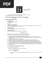 RECONOZCA EL SUJETO EN LAS SIGUIENTES ORACIONES : 1. 2. 3. 4. 5. 6. 7. 8. 9. 10. Es imposible que vuelva contigo. Cuando la noche languidece, renace la sombra. Como yo te amo, nadie te amar. Flaca, no me claves tus puales. Nunca te alejes de m, amiga. Qu te agrada de cenar? A quines hablaste por telfono? Si nos dejan, haremos un rincn cerca del cielo. Quin te golpe? Aunque me cueste la vida, sigo buscando tu amor.