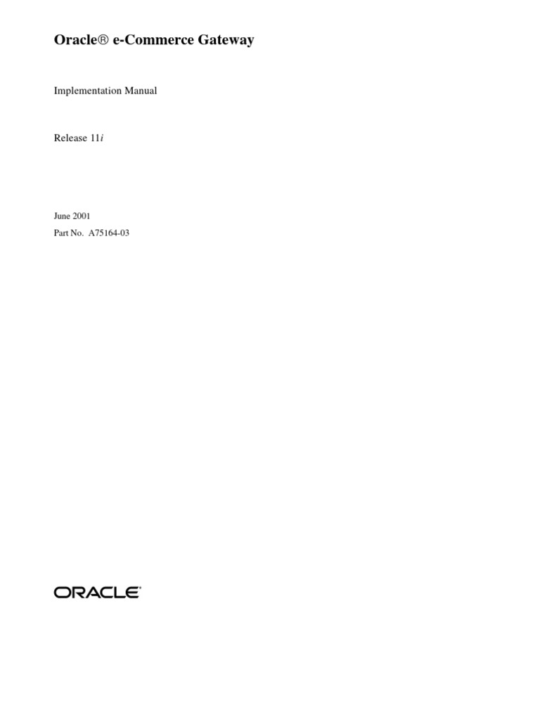 This manual is intended for anyone who is interested in implementing Oracle e-Commerce Gateway.