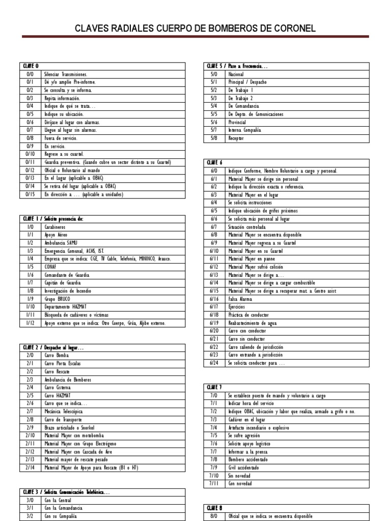 CLAVES RADIALES CUERPO DE BOMBEROS DE CORONEL
