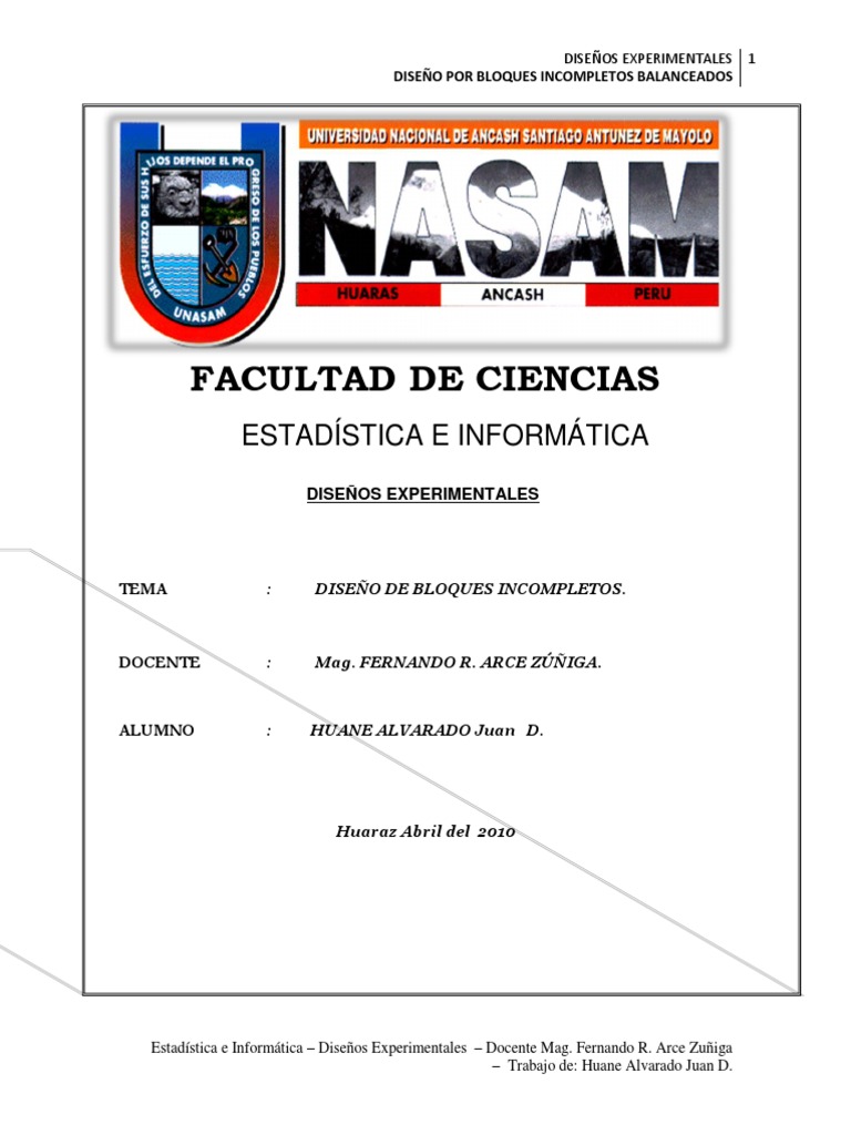 Estadstica e Informtica Diseos Experimentales Docente Mag. Fernando R. Arce Zuiga