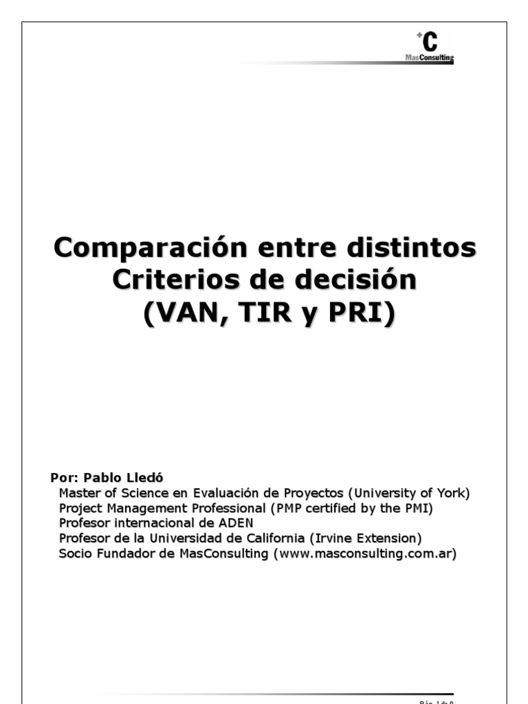 Por: Pablo Lled Master of Science en Evaluacin de Proyectos (University of York) Project Management Professional (PMP certified by the PMI) Profesor internacional de ADEN Profesor de la Universidad de California (Irvine Extension) Socio Fundador de MasConsulting ([Link])