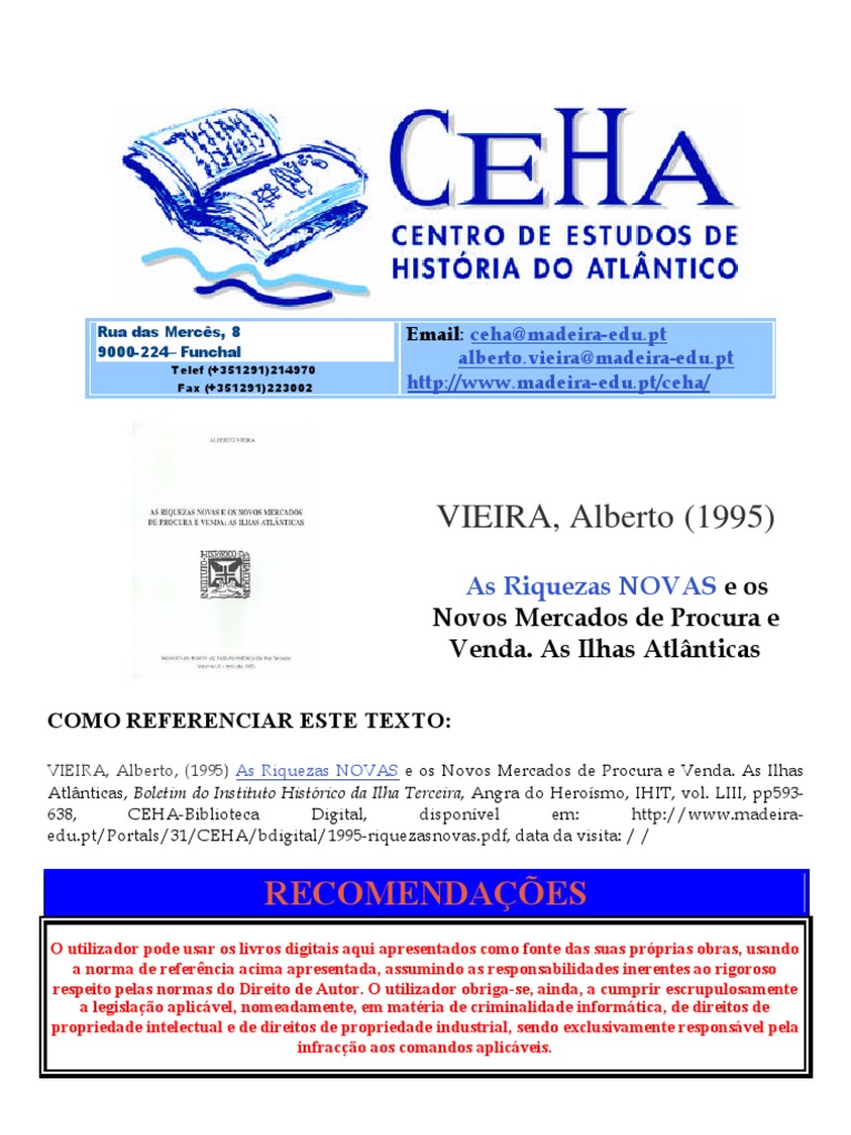 VIEIRA, Alberto, (1995) As Riquezas NOVAS e os Novos Mercados de Procura e Venda. As Ilhas