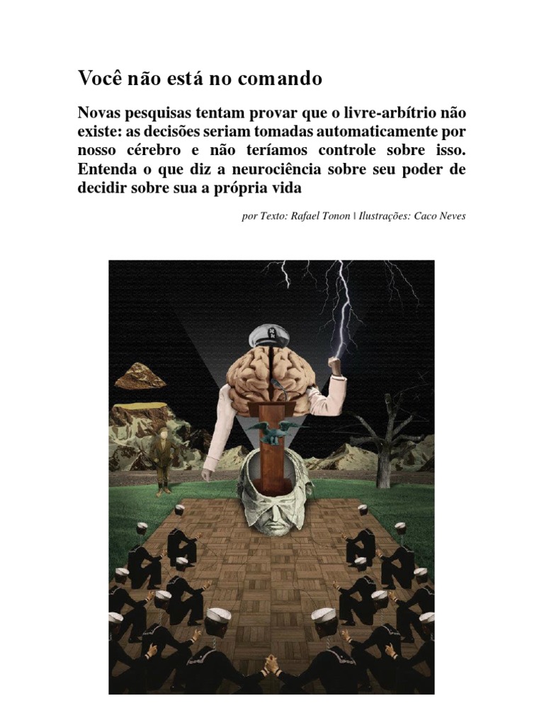 Novas pesquisas tentam provar que o livre-arbtrio no existe: as decises seriam tomadas automaticamente por nosso crebro e no teramos controle sobre isso. Entenda o que diz a neurocincia sobre seu poder de decidir sobre sua a prpria vida