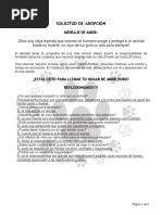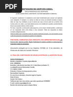 (Cama donde pueda dormir / casita para resguardarse) - El perro No ser en ningn caso golpeado, maltratado, amarrado, abandonado, ni regalado. El maltrato es un delito tipificado en el Cdigo Penal - Las personas que me entregan la mascota en adopcin pueden efectuar llamadas y visitas a mi residencia para constatar el bienestar de la mascota y solicitar fotografas de la mascota adoptada. - Contactar a la persona que me dio en adopcin a la mascota y la devolver si por alguna razn sta no se adapta en mi hogar o en caso de ya no pueda tenerla o si el perro adoptado no esta en un medio apropiado y no puedo atenderlo.