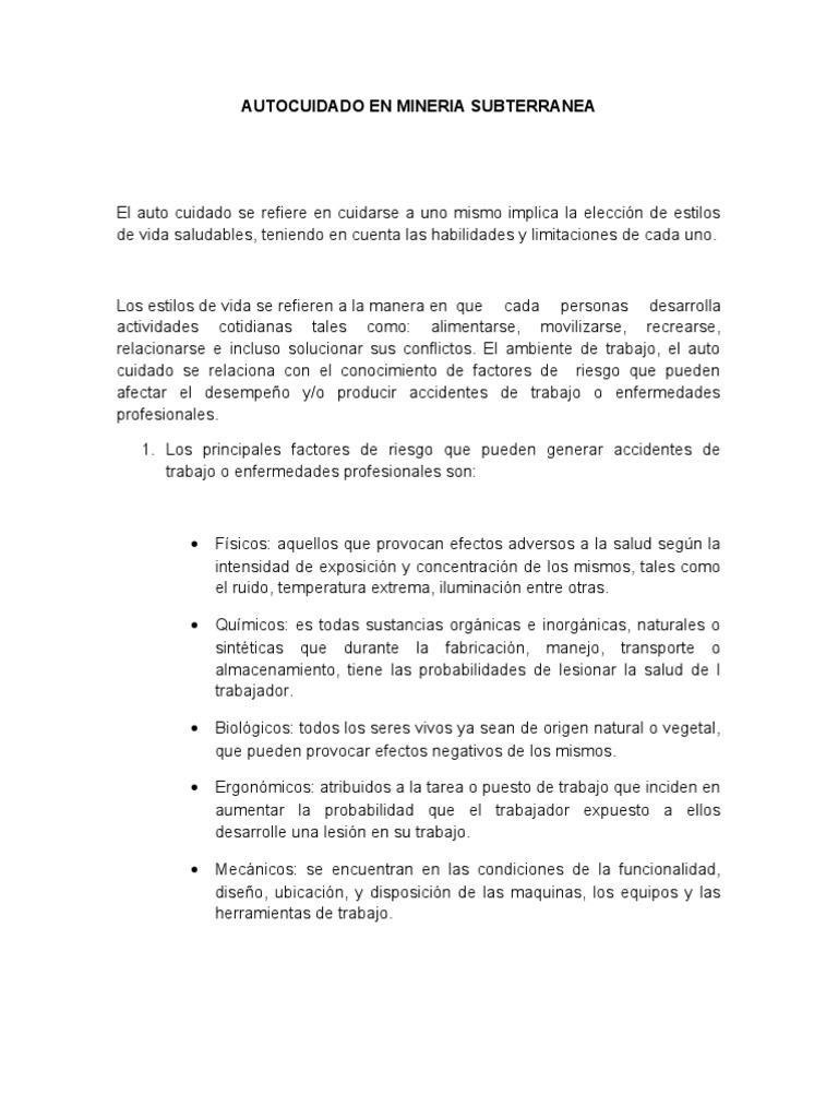 AUTOCUIDADO EN MINERIA SUBTERRANEA