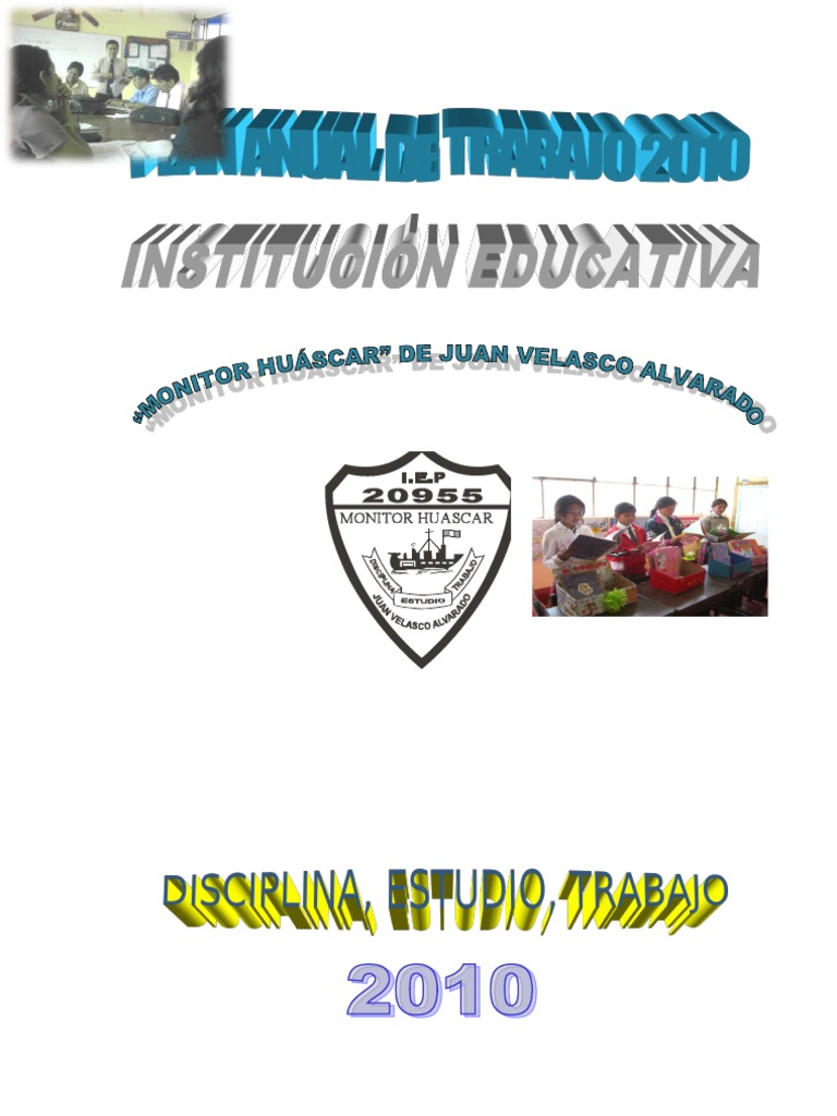 PLAN ANUAL DE TRABAJO 2010 DE LA INSTITUCION EDUCATIVA PBLICA MONITOR HUSCAR DE JUAN VELASCO ALVARADO