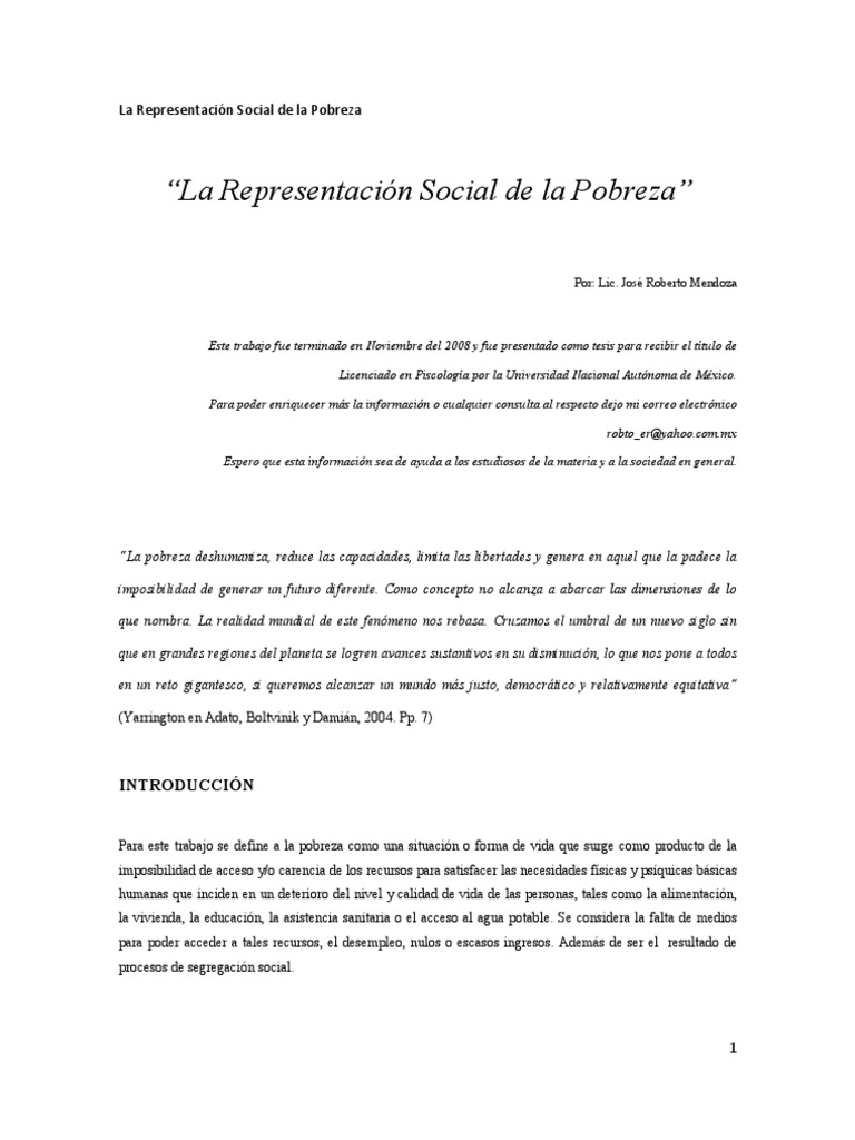 reconocido valor; por tanto, la pobreza varía en función de los valores reconocidos. El estado de pobreza es