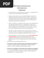 Una de las cosas que tenemos que hacer este nuevo ao; es llevar una vida santa y limpia delante de Dios. Arrepentimiento es el mensaje importante de la Biblia. Lo predico Juan el bautista, lo predico el seor Jesucristo y lo predicaron los apstoles; Arrepentimiento es reconocer el pecado y alejndose de l. Muchos quieren los beneficios de estar identificados con El Seor Jesucristo, Ser usados por Dios, ser usados en la Iglesia en alguna posicin sin apartarse de su pecado. El primer paso para recibir perdn es confesar el pecado y alejarse de l Hechos de los Apstoles 2:38 Pedro les dijo: Arrepentios, y bautcese cada uno de vosotros en el nombre de Jesucristo para perdn de los pecados; y recibiris el don del Espritu Santo. Cuando nos arrepentimos, Dios no solo promete limpiar nuestro pecado, sino tambin darnos un descanso espiritual. Vendrn en la Presencia del Seor tiempos de refrigerio, paz, en el alma, sientes una libertad, un gozo permanente en tu vida. Al principio, el arrepentimiento parece doloroso porque es difcil renunciar a ciertos pecados. Pero Dios le dar un mejor camino. Si su alma no tiene refrigerio, es porque no te has convertido de tus malos caminos. (Si te has arrepentido, pero aun sigues en el pecado, no te has alejado de ello) Lloras en el altar, gimes, la palabra te toca, el espritu Santo te redarguye pero al salir del Santuario el pecado te vuelve a llamar, te vuelve a conquistar, y caes de nuevo sabes porque? Porque nunca te convertiste de corazn, es la razn que no hay tiempos de refrigerio-. A veces tenemos los sentimientos confundidos acerca de nuestros pecados. Tenemos miedo de ser daados por nuestros pecados, y queremos ser perdonados. Pero no estamos seguros de querer librarnos de ellos ya ahora. Un hombre que tiene un mal hbito que est estorbando su comunin con Dios y que daa su testimonio; Le pide a Dios le perdone por su adiccin, pero no lo deja. Este hombre a menudo iba al frente de la iglesia y se arrodillaba ante el altar y oraba: "Seor, quita las telaraas de mi vida" Un domingo su pastor, cansado de or la misma vieja oracin, se arrodill al lado de l y clam: "Seor, mata la araa!" Si, a veces es necesario una accin radical para romper un hbito pecaminoso. Tenemos que hacer ms que pedirle a Dios limpieza cada vez que sucumbimos a la tentacin, por importante que esto sea. Tambin tenemos que pedir a Dios que nos ayude a tomar los pasos necesarios para mantener las telaraas fuera de nuestras vidas. 1-. Tenemos que aborrecer nuestros pecados, confesar nuestra esclavitud al mismo, y decidir terminar con ellos. 2-. Luego tenemos que llenar nuestras mentes con buenos pensamientos 3-. y mantenernos apartados de la gente y de los lugares asociados con nuestros pecados. Jess dijo Por tanto, si tu ojo derecho te es ocasin de caer, scalo. (Mateo 5:29) Matar la araa impide que se acumulen las telaraas. PENSAMIENTO: La admisin del pecado no es suficiente: Es preciso abandonarlo Como seas prometi: Y conoceremos y proseguiremos en conocer a Jehov; como el alba est dispuesta su salida, y vendr a nosotros como la lluvia, como la lluvia tarda y temprana a la tierra (seas 6.3) El ejemplo de Arrepentimiento en la Biblia es 1-. Zaqueo 2-. La samaritana 3-. Pablo Ellos abandonaron su pecado, se apartaron de ello, y de las personas que eran tropiezos para ellos-. Y de los lugares que los podan afectar de nuevo-. Hermano Mata la araa Judas se arrepinti, pero acabo en el infierno. Pedro se arrepinti, pero termino en el cielo-.
