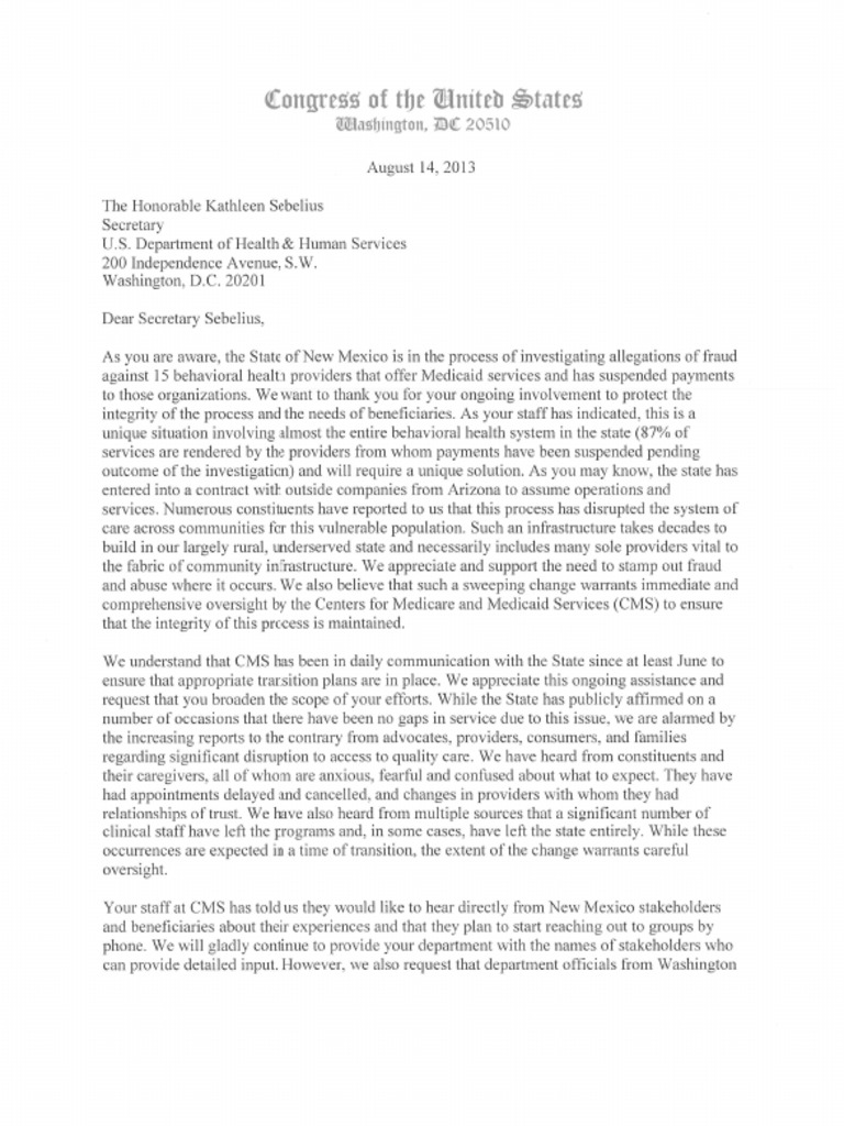 U.S. Senators Tom Udall and Martin Heinrich, along with Reps. Ben Ray Luján and Michelle Lujan Grisham call on the U.S. Department of Health & Human Services Secretary Kathleen Sebelius hold…Descripción completa