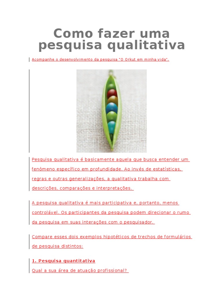 Usarei como exemplo a pesquisa sobre o Orkut, que encontra-se em