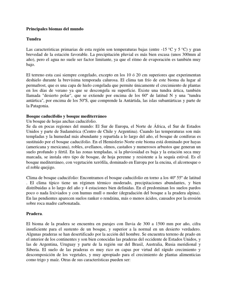 Los biomas son reas definidas, climtica y geogrficamente, con similares condiciones