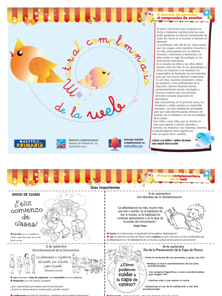 El nuevo ciclo lectivo que comienza nos invita a replantear nuestras prcticas para poder garantizar un derecho fundamental de todos los chicos en la escuela: el derecho de aprender. La enseanza, ms all de las otras tareas que nos ocupan como maestros (escuchar a un nio, preocuparnos por su infancia, mimarlos, contenerlos y alentarnos), no debe perder su lugar de privilegio en las instituciones educativas. En la escuela los nios y las nias deben avanzar cada vez ms en sus aprendizajes y somos los maestros y las maestras los responsables de brindarles las herramientas para que esto ocurra. Nuestro compromiso es con ellos, nuestros estudiantes. Somos los maestros, como profesionales de la educacin, quienes debemos buscar permanentemente nuevas estrategias y recursos creativos que nos permitan ofrecerles variadas situaciones de aprendizaje. Bajo esta premisa, en el presente curso, les brindamos a todos ustedes un cuadernillo renovado, con ms cantidad de actividades, para que cada docente pueda utilizarlas de acuerdo con la realidad y con las necesidades de su grupo. Esos nios y esas nias que se sientan en cada aula esperan y desean aprender, y nosotros, los maestros y las maestras, tenemos la oportunidad de hacer aquello que ms nos gusta hacer: ensear.