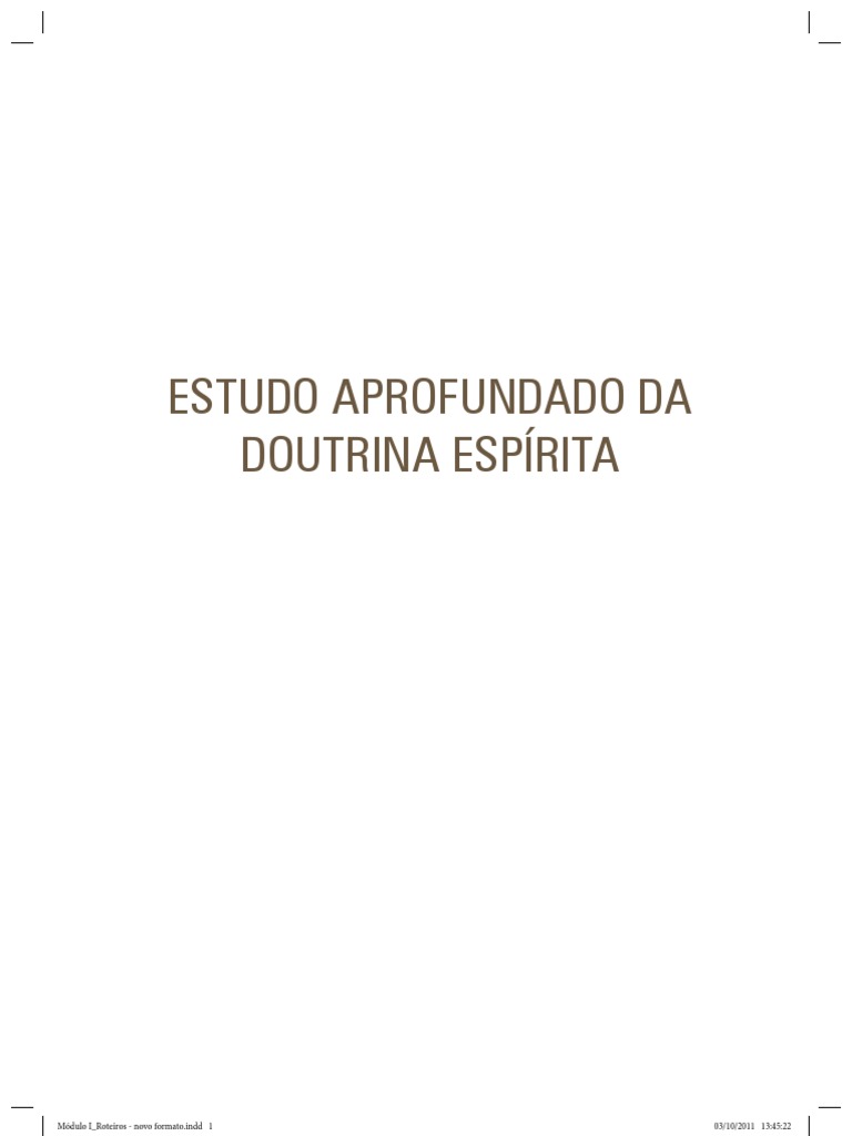 Apresentao................................................................................................................... 7 Esclarecimentos.............................................................................................................. 9 1. Mtodos Filosficos e Cientficos....................................................................... 11 2. Filosofia e Cincia Espritas................................................................................. 21 3. Revelao Religiosa............................................................................................... 29 4. A Revelao Esprita............................................................................................. 39 5. Educao Esprita.................................................................................................. 47 6. Conseqncias do Conhecimento Esprita........................................................ 67 7. Deus ....................................................................................................................... 75 8. Jesus ....................................................................................................................... 87 9. Esprito .................................................................................................................. 97 10. Instinto .................................................................................................................. 107 11. Inteligncia Humana ............................................................................................ 121 12. Classificao da Inteligncia Humana ............................................................... 137 13. Matria ................................................................................................................... 157 14. Perisprito .............................................................................................................. 169 15. O Corpo Fsico ..................................................................................................... 181 16. Livre Arbtrio ........................................................................................................ 193 17. Causa e Efeito ....................................................................................................... 203 18. Evoluo ................................................................................................................ 217 19. O Plano Fsico ....................................................................................................... 239 20. A Desencarnao ................................................................................................. 249 21. Sobrevivncia e Imortalidade da Alma ............................................................. 263 22. O Mundo Espiritual ............................................................................................. 275