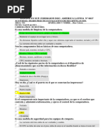 . Guardar, procesar y controlar informacin y archivos. . Almacenar informacin de forma no voltil. . Transmitir los movimientos de la mano hacia la computadora. 8. A qu tipo de dispositivo pertenece el teclado? . Salida. . Puerto. . Entrada. . Comunicacin. 9. Es un pequeo programa de computadora; puede causar efectos indeseables y hasta daos irreparables al disco duro de la computadora. . Cracks. . Virus Informticos. . Aplicaciones. . Parches. 10. Es un disco que se puede insertar y remover fcilmente de la computadora. Su capacidad de almacenamiento es limitada (alrededor de 1.5 Mb) y de acceso lento. . Disco duro. . Disco flexible 3 1/2. . Cassete. . CD-ROM. 11. Cules son los dispositivos de almacenamiento ms comunes? . Casete, disco y DVD. . DVD, disco duro, CD y casete. . Disquete, CD, DVD y casete. . Disco duro, disquete, DVD y CD. 12. La impresora es un dispositivo de: . Comunicacin. . Impresin. . Entrada. . Salida.