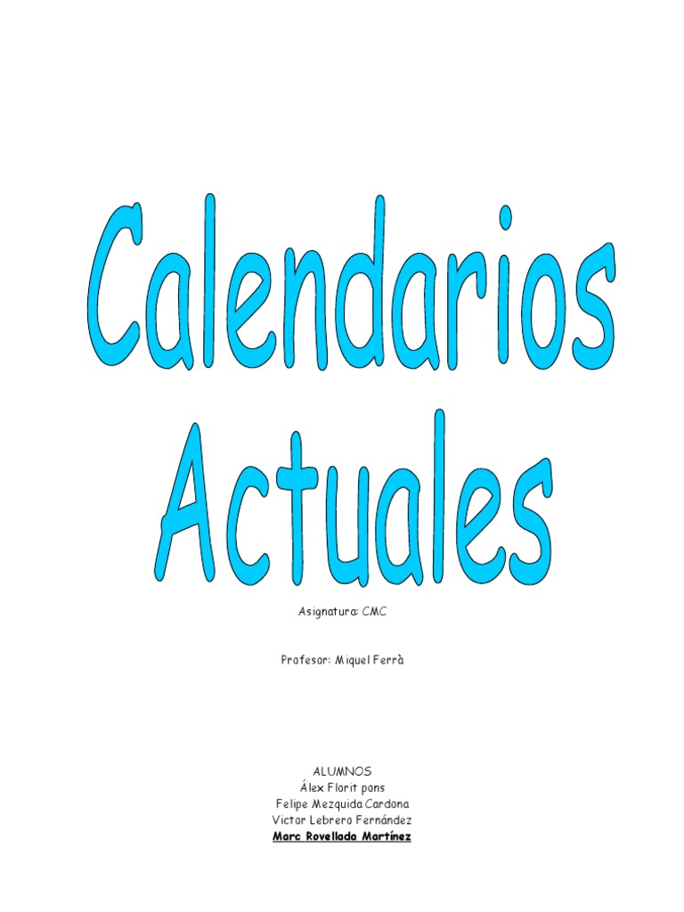 A nuestro trabajo de Ciencias del mundo contemporáneo sobre los calendarios actuales