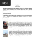 Qu es la explotacin laboral infantil?: Es el trabajo de los nios y nias que impide su educacin, amenaza su salud fsica o psquica y les impide jugar; jornadas que superan las doce horas; remuneraciones nfimas y trabajos que afectan a su dignidad o autoestima. Las nias sufren una doble discriminacin por su condicin de mujeres, y son ms vulnerables a todas las formas de explotacin, sobre todo, al abuso sexual y a la prostitucin. Excluidos de la educacin y atrapados en el crculo vicioso de la pobreza, estos nios trabajadores ven socavados sus derechos bsicos, su salud e incluso su vida. La explotacin infantil est asumida dentro de la familia como una fuente de ingresos aceptada por la totalidad de sus miembros. Por otro lado un nio resulta ms rentable que un adulto debido a su indefensin, sumisin y al hecho de que realiza el mismo trabajo que un adulto, sin ningn tipo de queja y a cambio de una remuneracin muy inferior. Derechos del Nio : La Convencin de los Derechos del Nio fue aprobada por la Asamblea General de las NU y ratificada por ms de 20 estados el 20 de noviembre de 1989. La Convencin sigue el esquema de todo tratado internacional tanto en su estructura interna como en su contenido. Slo quedan 6 pases para la ratificacin universal, estos son: EEUU, Suiza Somalia, Omn, Emiratos rabes Unidos y las Islas Cook. Esto hace de la Convencin de los derechos del nio el tratado de derechos Humanos ratificado por un mayor nmero de Estados Partes.