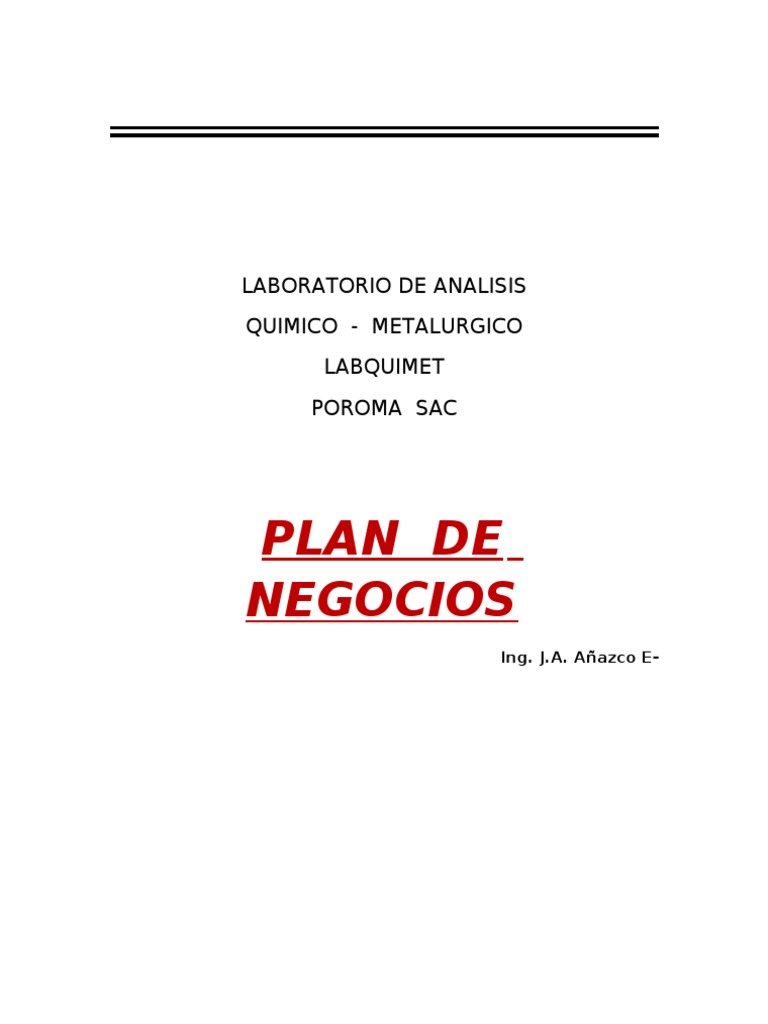 HISTORIA La idea de instalar un laboratorio qumico metalrgico es el resultado de la conversacin entre los Sres. Anbal Benavides y Jorge Aazco, con el fin de prestar servicios en el sector minero metalrgico en la ciudad de Nasca. Propuesta planteada al Ing. Vicente Olcina, quien propone que se plasme en un informe sucinto y conciso y se le haga llegar el informe respectivo.