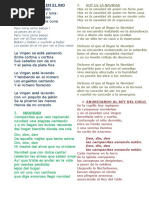 11. EL DURAZNERO Debajo de un duraznero Santa Mara soaba Y el rbol se iba llenando de tenues alas rosadas. /Por las sendas de la tarde vi al mensajero de amor/ Sobre la Virgen el Nio como una y como otra flor. /A la orilla de la fuente calla la Virgen morena Su silencio transparente alaba el agua serena/ /El Nio duerme en sus brazos Como el lucero en el cielo/ Para que no se despierte detiene el vuelo su vuelo (4) 12. EL NIO CARPINTERO Se encuentra en un portal muy pobre