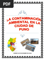 (1.31), aluminio (0.11), otros metales (0.21) y suciedad, cenizas et. (12.16) TM respectivamente. Diversos estudios realizados en el mbito de la cuenca, en la ciudad de Puno, especficamente en la Baha Interior, advierten sobre los altos niveles de contaminacin,