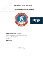 rea I: Organizacin de la Empresa. Principios: 1. Funciones y Responsabilidades. Total Obtenible: 60ptos Total Obtenido: 0ptos 2. Autoridad y Autonoma. Total Obtenible: 40ptos Total Obtenido: 0ptos 3. Sistemas de Informacin. Total Obtenible: 50ptos Total Obtenido: 30ptos