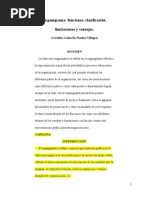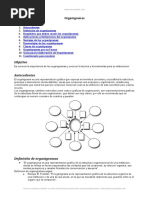 de una estructura de organizacin, incluyendo las principales funciones y sus relaciones, los canales de supervisin y la autoridad relativa de cada empleado encargado de su funcin respectiva. Otro autor expone su concepto de esta forma: El organigrama constituye la expresin, bajo forma de documento de la estructura de una organizacin, poniendo de manifiesto el acoplamiento entre las diversas partes componente. Al analizar estas definiciones observamos que cada una de ellas conserva la esencia del mismo, y nicamente se diferencian en su forma y en su especificacin. Un autor considera que los organigramas son tiles instrumentos de organizacin y nos revelan: La divisin de funciones, los niveles jerrquicos, las lneas de autoridad y responsabilidad, los canales formales de la comunicacin, la naturaleza lineal o asesoramiento del departamento, los jefes de cada grupo de empleados, trabajadores, entre otros; y las relaciones que existen entre los diversos puestos de la empresa en cada departamento o seccin de la misma. Segn el concepto de organigrama, este muestra: Un elemento (figuras) La estructura de la organizacin Los aspectos ms importantes de la organizacin Las funciones Las relaciones entre las unidades estructurales Los puestos de mayor y aun los de menor importancia Las comunicaciones y sus vas
