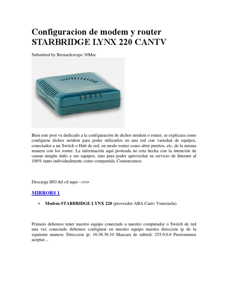 Configuracion de Modem y Router STARBRIDGE LYNX 220 CANTV