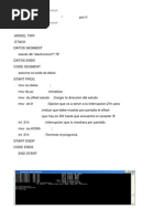 PrintA Proc Near MOV MOV MOV MOV MOV CicloPrint: MOV MOV MOV DIV MOV ADD CMP AX,Temp DX,0 CX,[BX+DI] CX Temp,DX ; Guarda el residuo en Temp AX,48 ; 48=ASCII del 0. En AX est el resultado de la divisin AL,48 ; Es cero? ZeroIzq,0 BX,OFFSET Convierte DI,0 AX,a Temp,AX