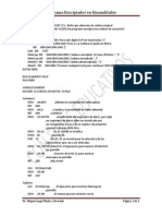 PROGRAMA SERIE DE FIBONACCI EN ENSAMBLADOR CON PROCEDIMIENTOS LEA INT MOV INT CMP JG CMP JE CMP JNE CMP JNE MOV JMP QuitaCar: LEA MOV MOV MOV DEC JMP BX,Buffer SI,Longitud DL,32 [BX+SI],DL ; Rellena con espacios Longitud CicloEnt AL,30h ; Es menor que 0? DX,Buffer 21h AH,07h ; Entrada de car cter sin eco en pantalla 21h AL,39h ; Es mayor que 9? CicloEnt AL,0dh ; Es Enter? FinEntrada AL,08h ; Es BackSpace? Sigue Longitud,0 QuitaCar Buffer,32 CicloEnt