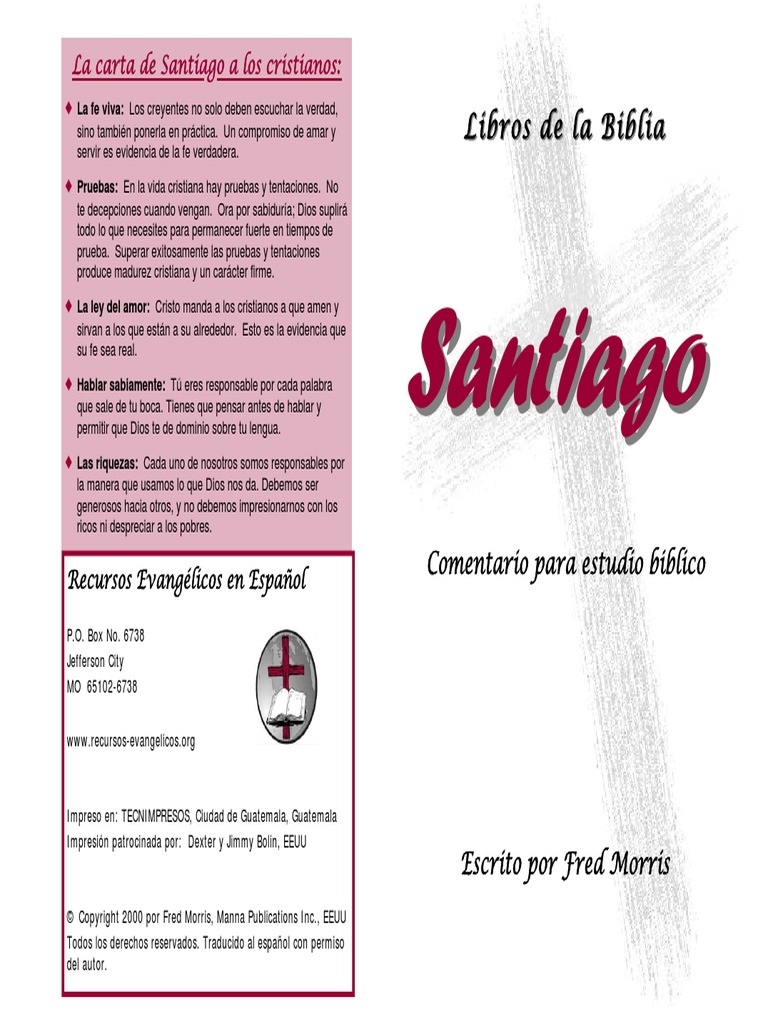 Santiago llam hermanos a los cristianos que estaban en la dispersin. Ellos eran sus hermanos en la fe y conocan muy bien el evangelio de Jesucristo. Ellos haban escuchado a Santiago predicar diariamente, Informacin adicional: pero necesitaban vivir el evangelio Santiago escribi acerca de: da tras da. De igual forma, Probar la verdadera fe nosotros debemos vivir lo que (Santiago 1:12). creemos de Jesucristo, an cuando Cmo somos tentados los tiempos sean malos. Dios (Santiago 1:13). habla a otras personas a travs de nuestras vidas y de nuestro La ley del amor de Dios en el testimonio; y ellos necesitan ver corazn del cristiano nuestra fe a travs de la forma en (Santiago 2:12). que vivimos y alabamos a Dios. Las buenas obras que crecen Todas las personas que siguen por la fe (Santiago 2:17). a Cristo viven por fe. La fe da frutos. El fruto de la fe es nuestro La fe triunfa sobre nuestro hablar (Santiago 3:10). carcter: es amor, paciencia, bondad y toda caracterstica La fe contina, an cuando buena. Los buenos hbitos en estamos sufriendo nuestras vidas y las buenas obras (Santiago 5:10-11). que realizamos proceden de La oracin de fe por el enfermo nuestra fe. Al principio, quizs no (Santiago 5:15). logremos estas buenas obras tan fcil o rpidamente. Pero Dios nos da al Espritu Santo para ayudarnos a vivir como Jess vivi y hacer las cosas como l las hizo (Lucas 11:13). Cuando la fe de los hombres es verdadera, entonces obedecen la palabra de Dios. Cuando ellos obedecen los mandamientos de Dios, crecen en su fe; sin embargo, cuando descuidan los mandamientos de Dios, o no escuchan la voz de Dios, no hay avance en sus vidas. Algunas personas piensan que esto fue lo que ocurri con los creyentes que estaban en la dispersin: los tiempos difciles los haban esparcido, les faltaba amistad y enseanzas, y el gozo que haban conocido tal vez ya haba desaparecido.