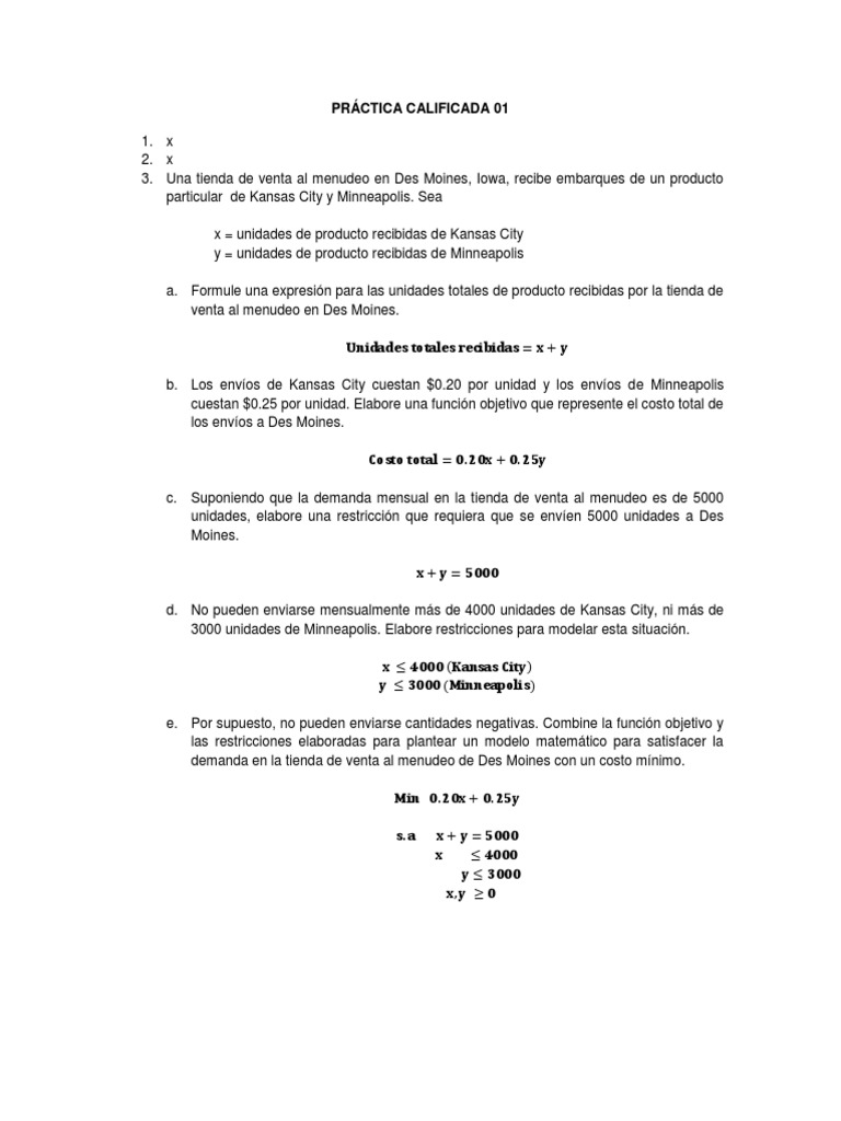 b. Los envos de Kansas City cuestan $0.20 por unidad y los envos de Minneapolis cuestan $0.25 por unidad. Elabore una funcin objetivo que represente el costo total de los envos a Des Moines.