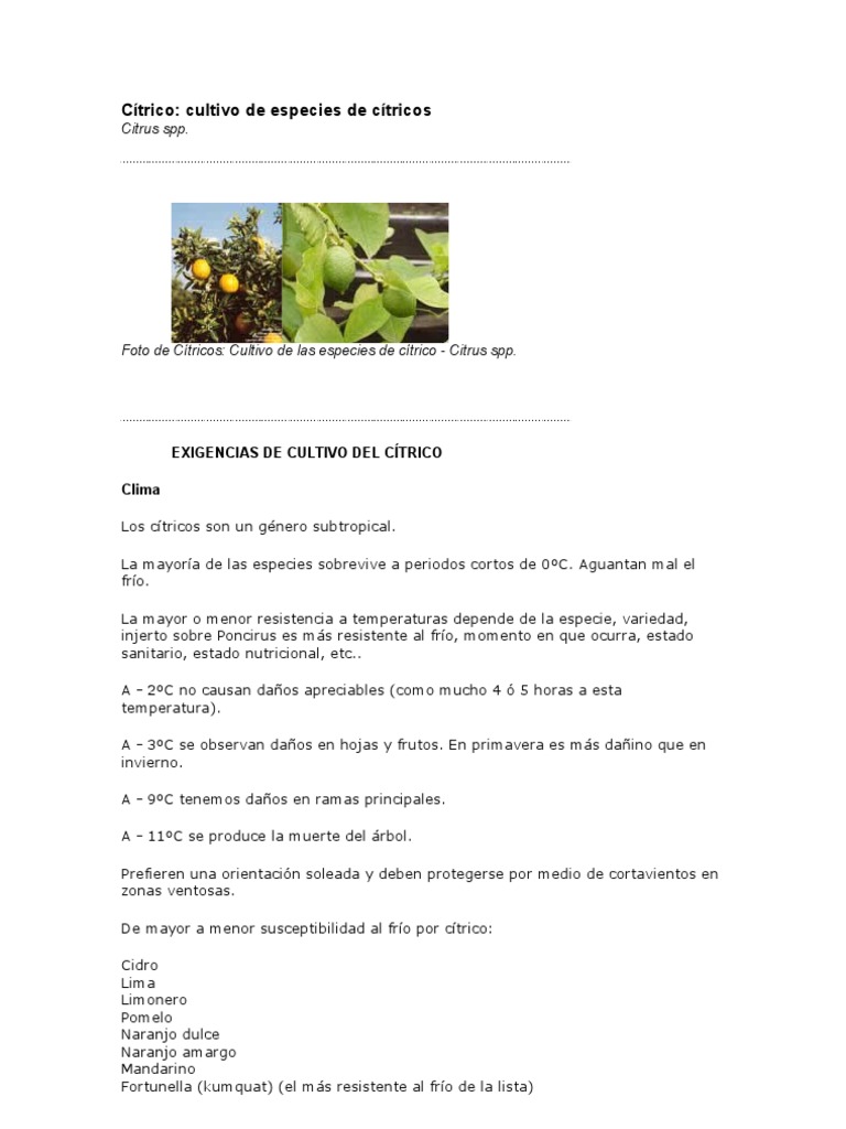 EXIGENCIAS DE CULTIVO DEL CÍTRICO