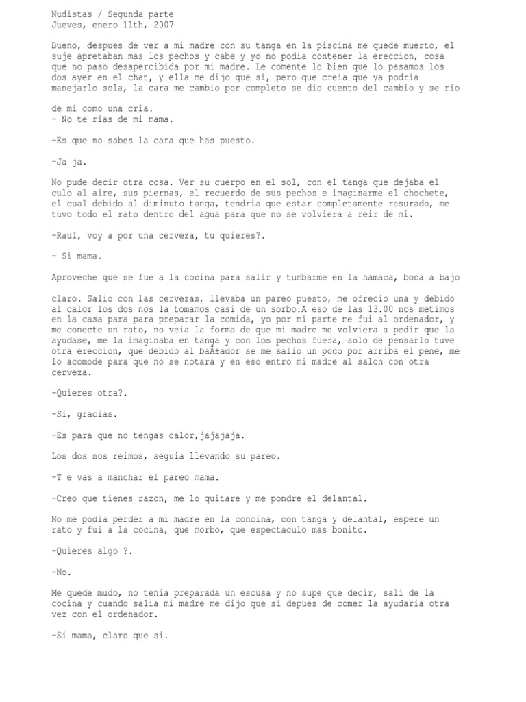 Nudistas / Segunda parte Jueves, enero 11th, 2007 Bueno, despues de ver a mi madre con su tanga en la piscina me quede