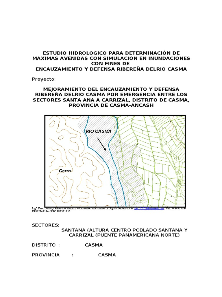 ESTUDIO HIDROLOGICO PARA DETERMINACIN DE MXIMAS AVENIDAS CON SIMULACIN EN INUNDACIONES CON FINES DE ENCAUZAMIENTO Y DEFENSA RIBEREA DELRIO CASMA